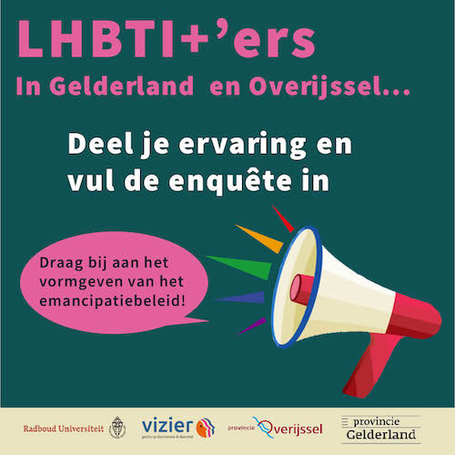 Identificeer jij je als lhbti+’er en woon je in Overijssel of in Gelderland? Deel je ervaringen dan met ons door het invullen van de vragenlijst!